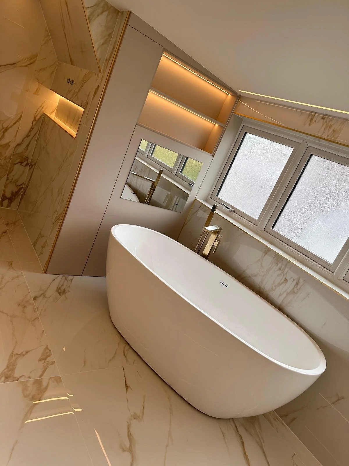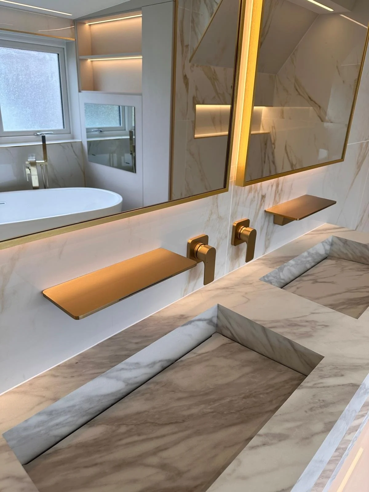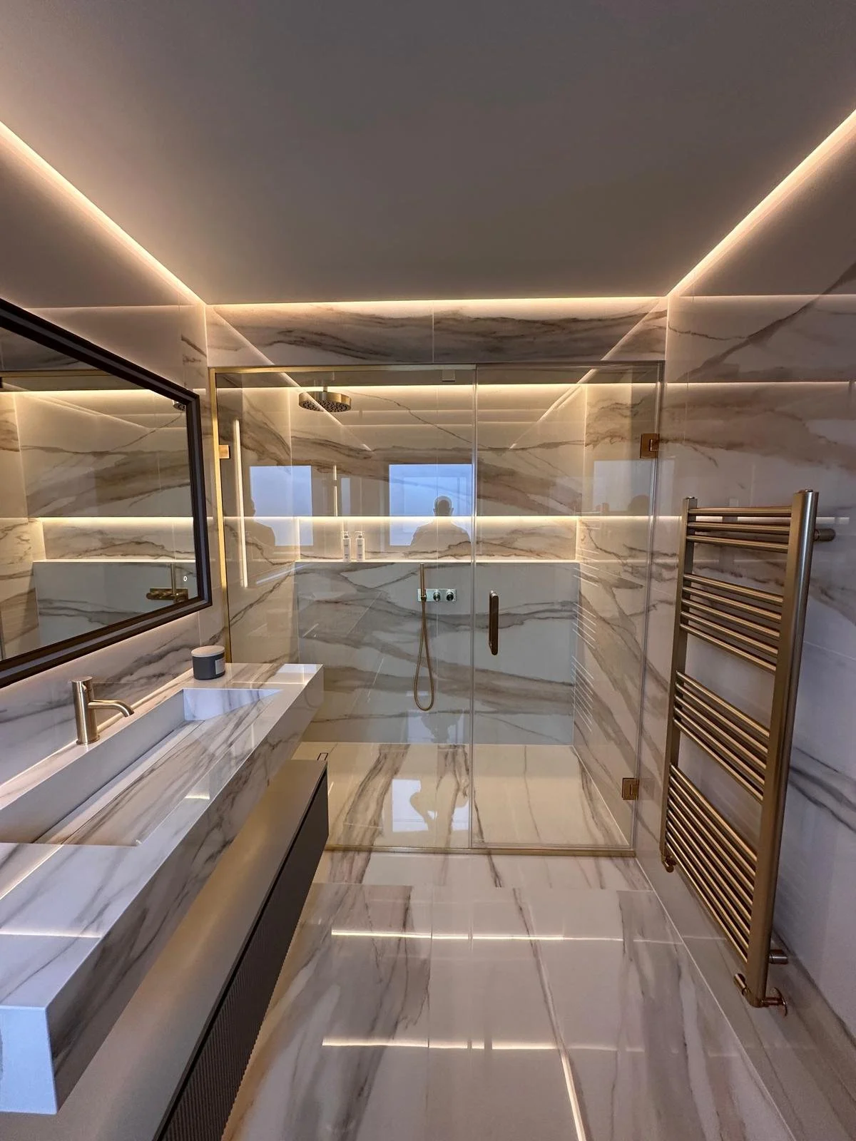 Explore our luxury bathroom renovations and bespoke designs. From marble finishes to modern cabinetry and integrated lighting, each project is crafted with precision and style.