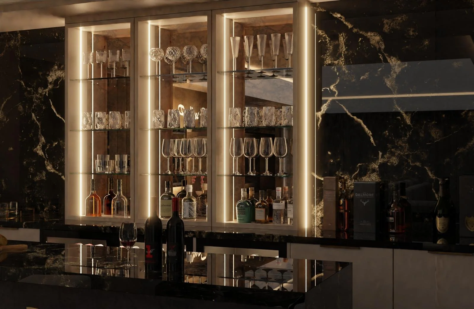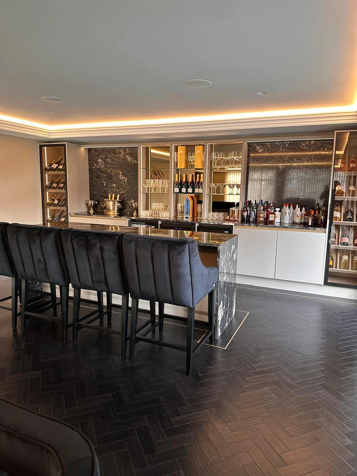 Zah Living designs and builds bespoke home bars that elevate interior spaces with luxury and functionality. Each home bar project is tailored to complement your lifestyle — blending craftsmanship, lighting, and premium materials for a sophisticated finish.