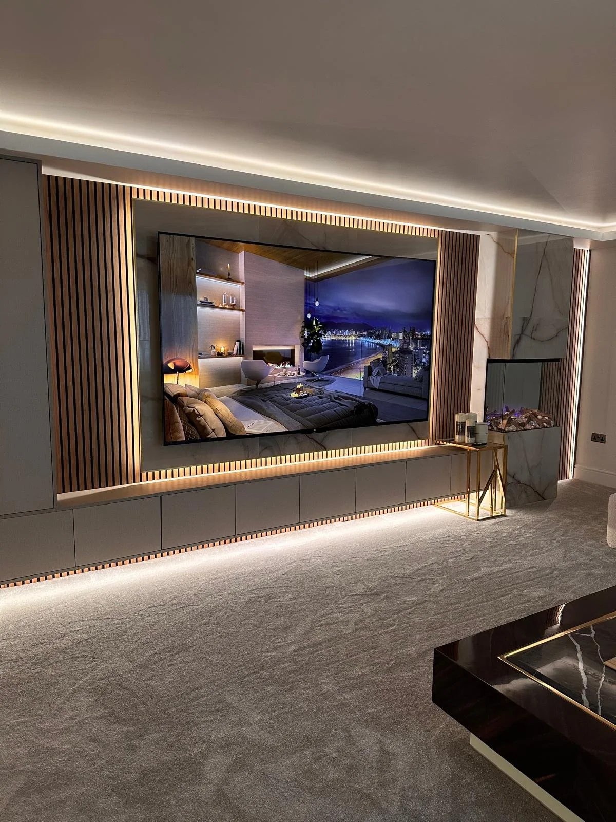 Bring your living space to life with a bespoke media wall. We design and install custom-built features that combine style with practicality — perfect for housing your TV, fireplace, shelving, and lighting in one stunning focal point.